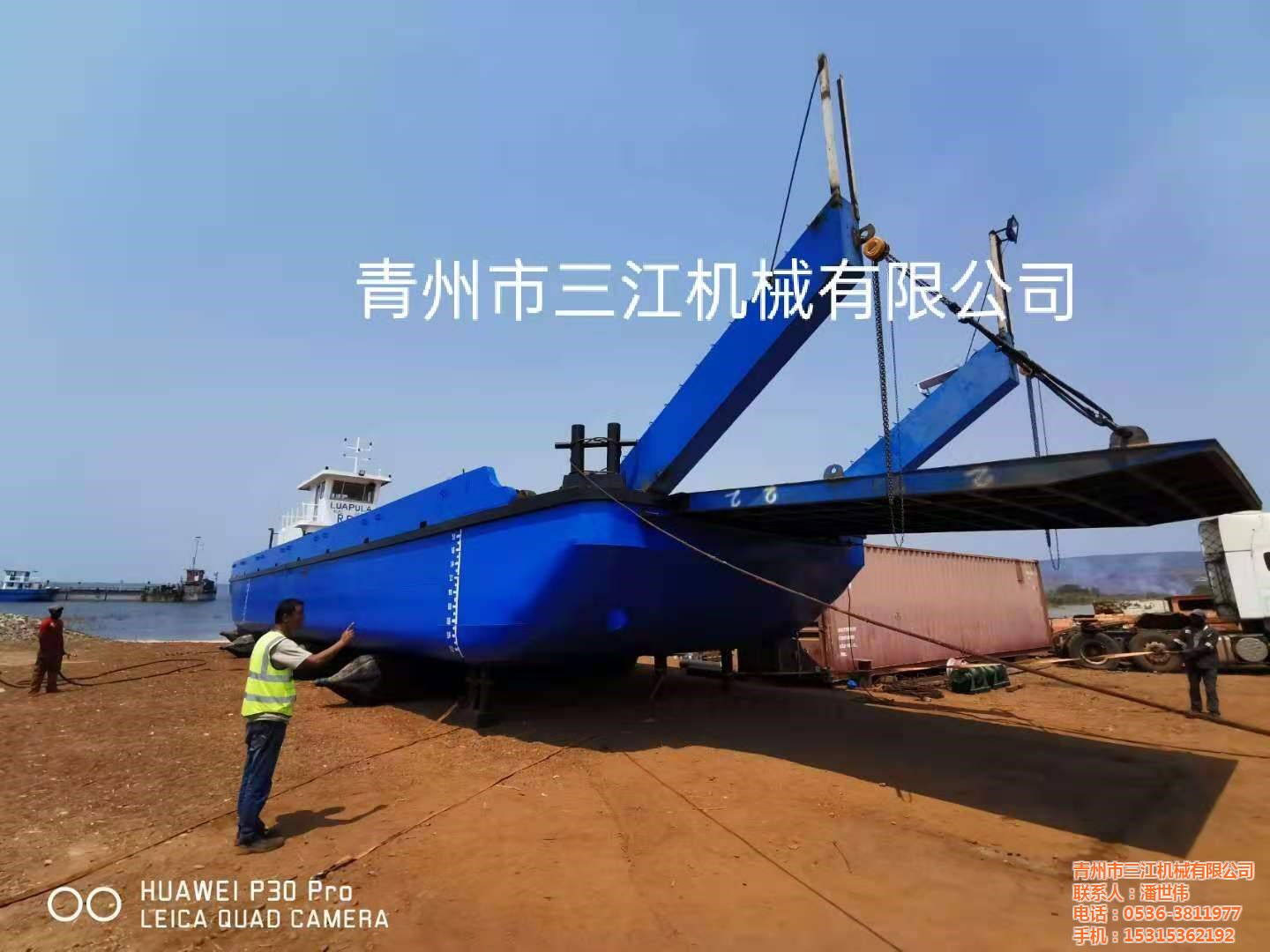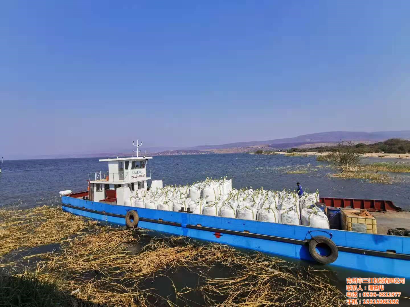非洲剛果金客戶定做的兩臺200噸礦石運輸甲板駁一次試車成功,交付使用。