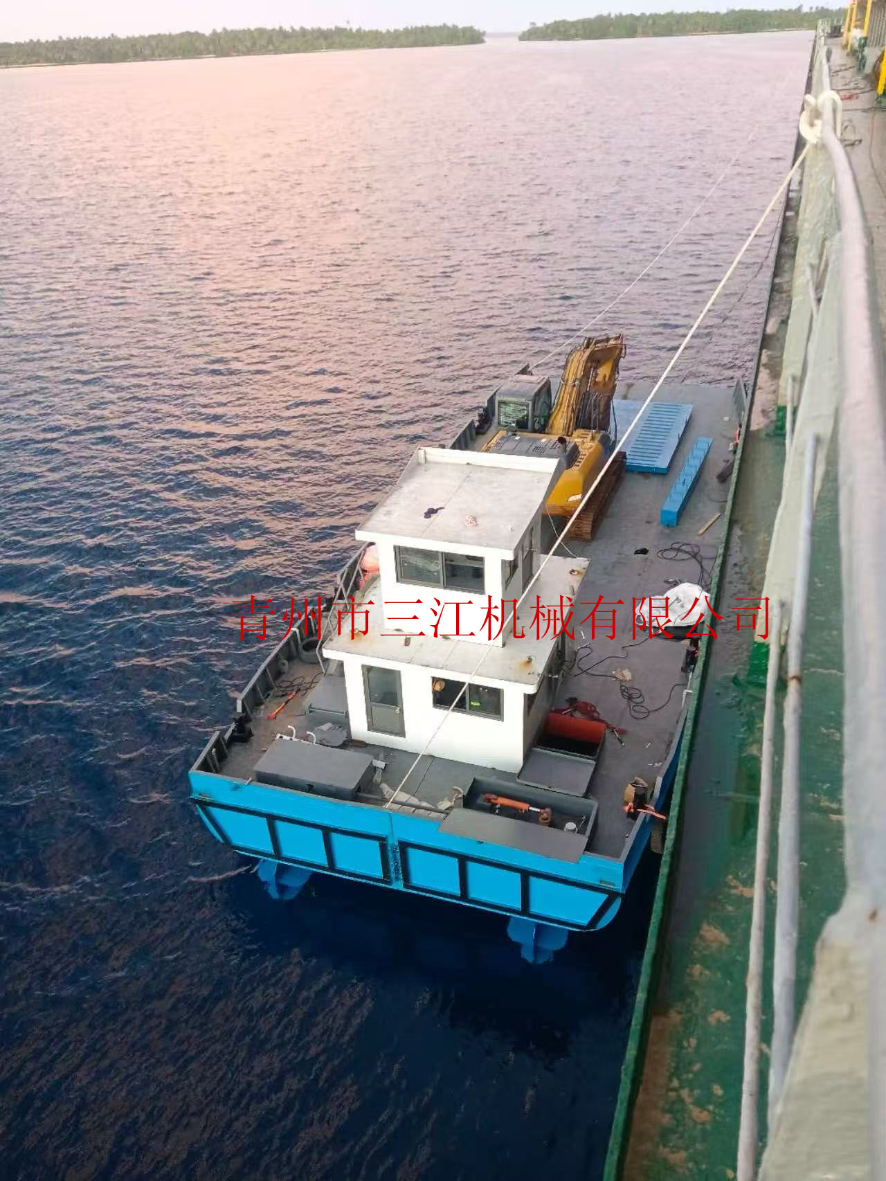2023年,中鐵集團承接了密克羅尼西亞一處原始島嶼的綜合開發(fā)工程。該島風(fēng)景秀美,椰林成蔭、白沙碧海,但基礎(chǔ)設(shè)施幾乎為零——無港口、無淡水、無電力,甚至連基本的物資卸載平臺都不存在。項目首期建設(shè)需運輸約3萬噸建材與設(shè)備上島,然而由于島嶼近岸比降為8:1,大型運輸船只無法靠岸,只能在距離島岸2-3公里的深水區(qū)停泊。傳統(tǒng)方式如小型一體接駁船,穩(wěn)定性差、裝卸效率低,無法滿足施工要求。