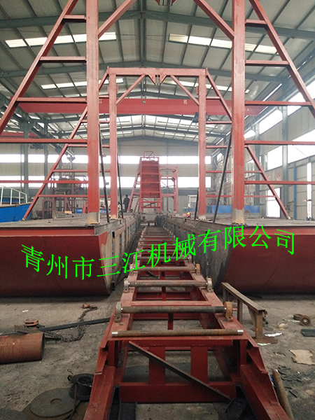 正在制造中的出口朝鮮的挖掘深度25米、工作量每小時(shí)100立方米挖沙及二次水洗挖沙船。此設(shè)備工作于朝鮮民主主義共和國(guó)境內(nèi)大同江上,與我公司200噸皮帶運(yùn)沙船配套使用。