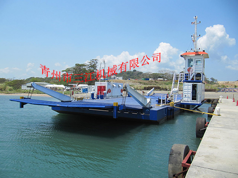 分體拼接組裝式通行駁船:本設(shè)備為鋼質(zhì)分體拼接式駁船,可運(yùn)輸車輛、人員、散雜貨、噸袋、集裝箱。整套設(shè)備可方便的進(jìn)行拆卸后卡車運(yùn)輸,每件的重量不超過28噸,長(zhǎng)度和寬度都適合公路運(yùn)輸?shù)囊蟆?ㄜ囘\(yùn)輸至工作地后,卸車的同時(shí)在水中快速組裝。